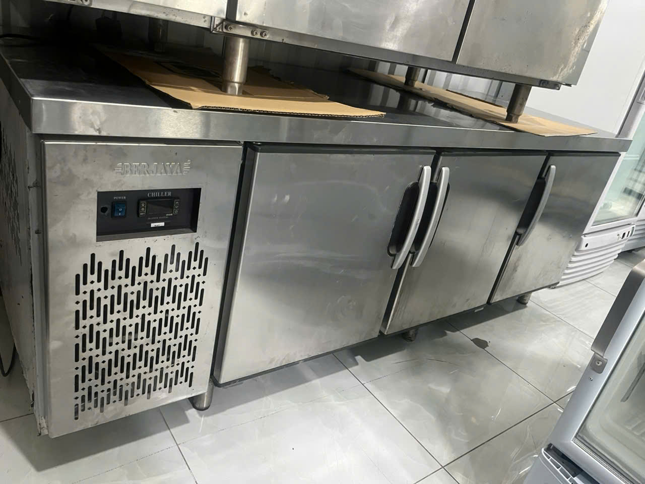 Bàn mát 2 cánh Berjaya model BS3DC7/Z - 2,1m, mới 88% , nguyên zin toàn bộ . Bàn mát là thiết bị không thể thiếu trong các nhà hàng, khu trung tâm thương mại, Bar,…với hình dáng gọn gàng vừa lưu trữ thực phẩm, vừa có thể làm bàn pha chế, hay bàn sơ chế đồ tiện dụng.