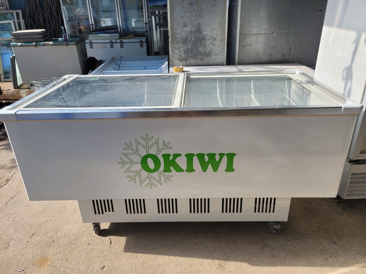 Tủ đông mặt kính phẵng hiệu Okiwi model OKF 706 dung tích 900L tủ mới 85%, lóc ga zin, chạy êm